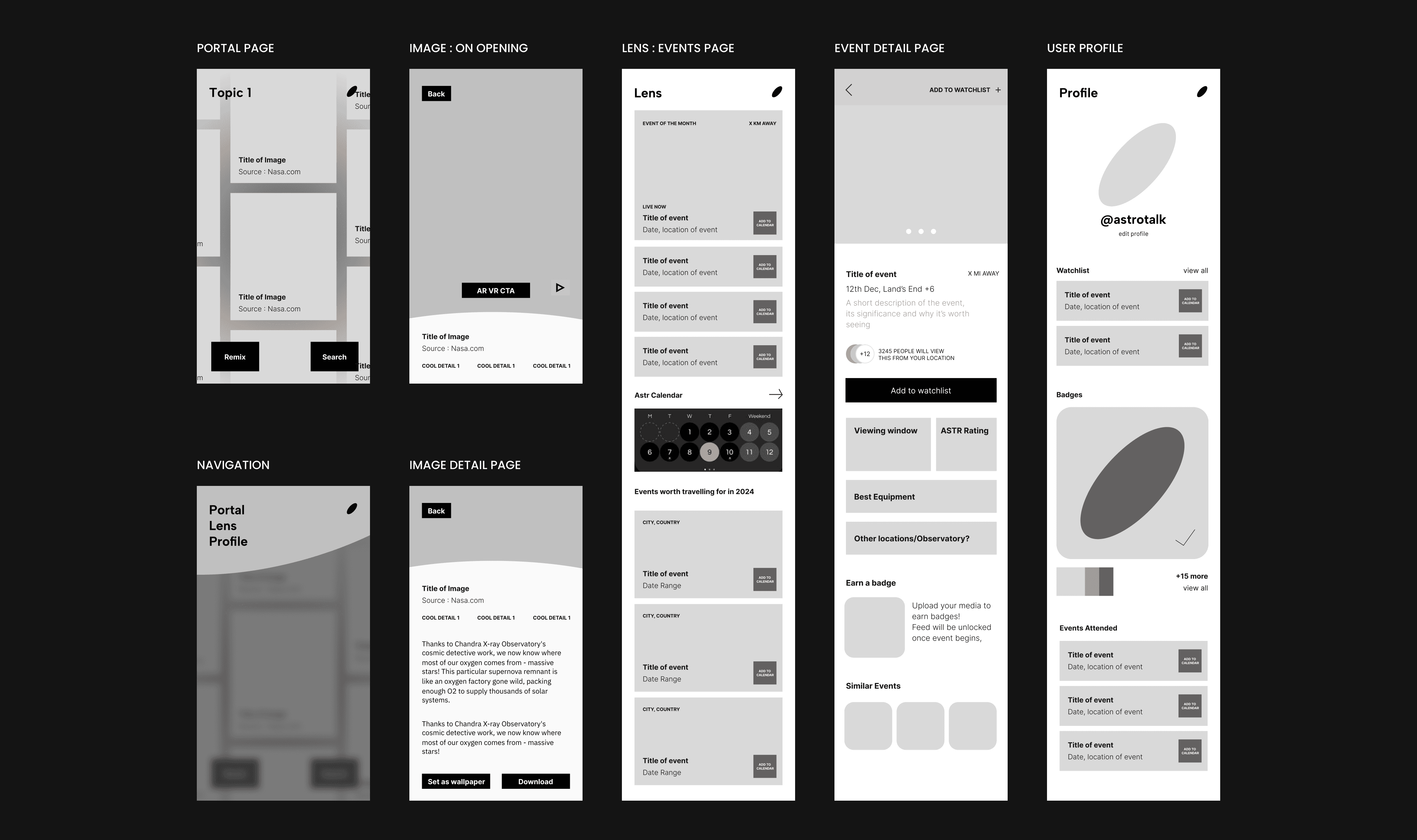 We narrowed down the app into three broad sections: the portal, the lens, and the profile page.